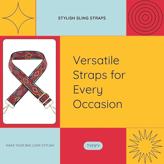 TYPIFY® Printed Adjustable Shoulder Sling Bag Strap, Wide Crossbody Bags Replacement Broad Straps with Golden Metal Hooks, Fashion Handbag Accessories, Strap Sling Bags