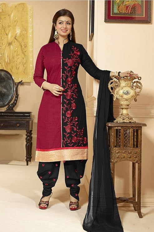 TYPIFY Women’s Semi-Stitched Maroon & Black Embroidered Salwar Suit with Dupatta | Bridal Suit & Marriage Dress Material for Women | Heavy Work Cotton Blend Festival Wear