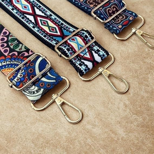 TYPIFY® Printed Adjustable Shoulder Sling Bag Strap, Wide Crossbody Bags Replacement Broad Straps with Golden Metal Hooks, Fashion Handbag Accessories, Strap Sling Bags
